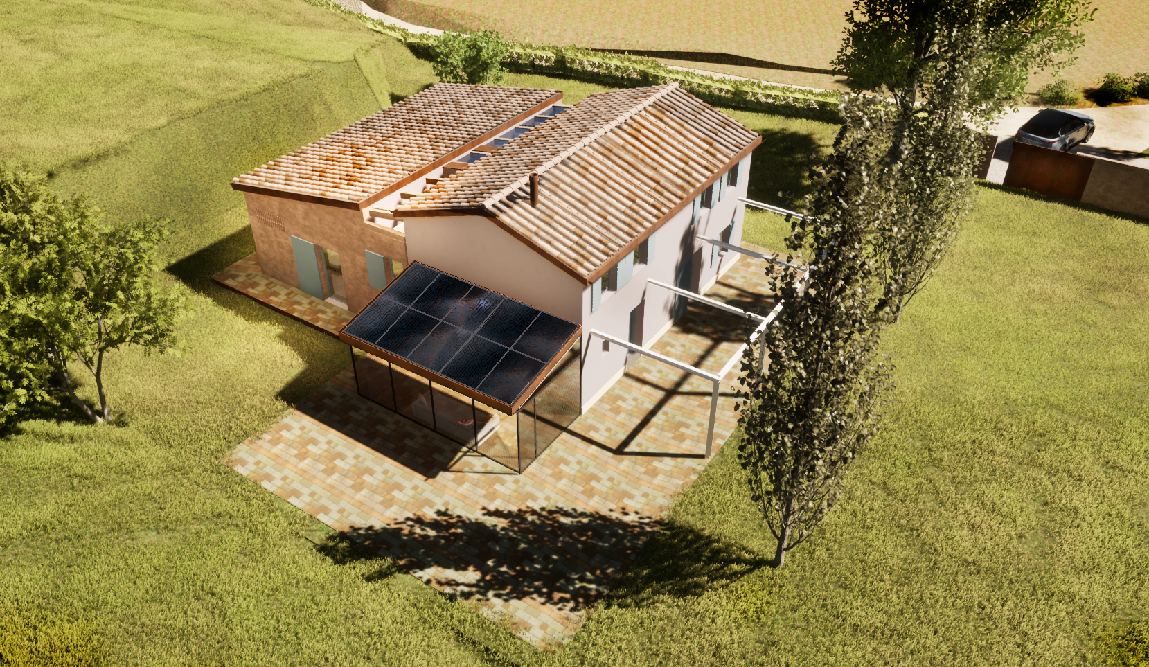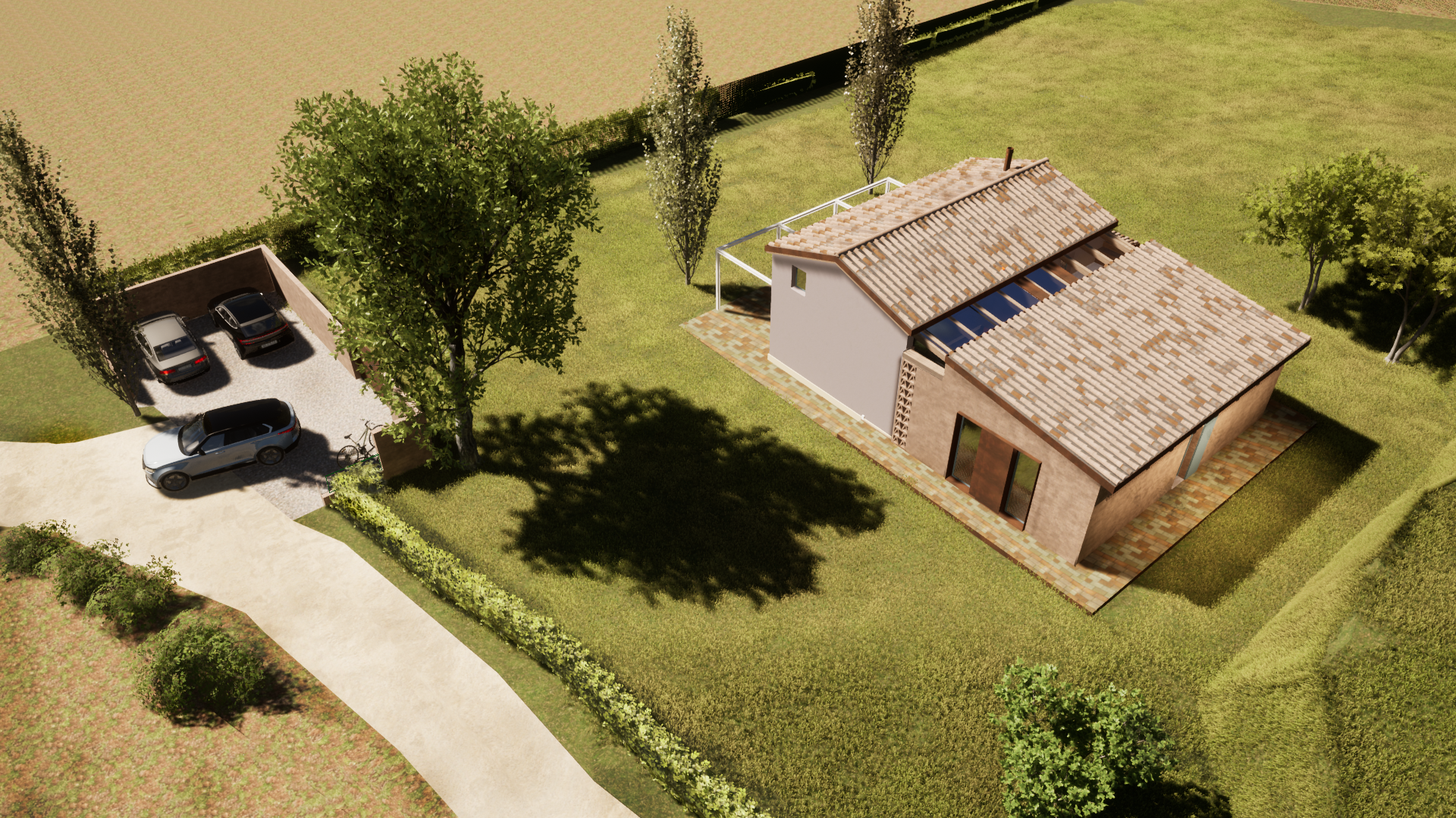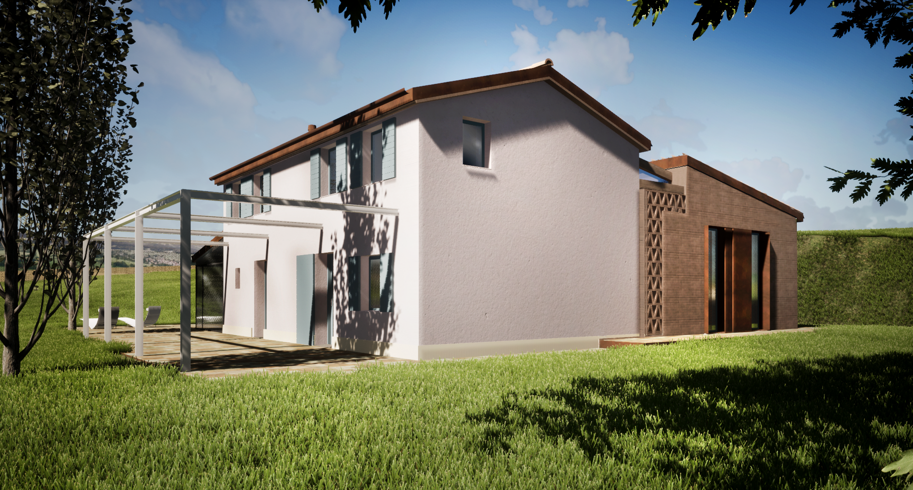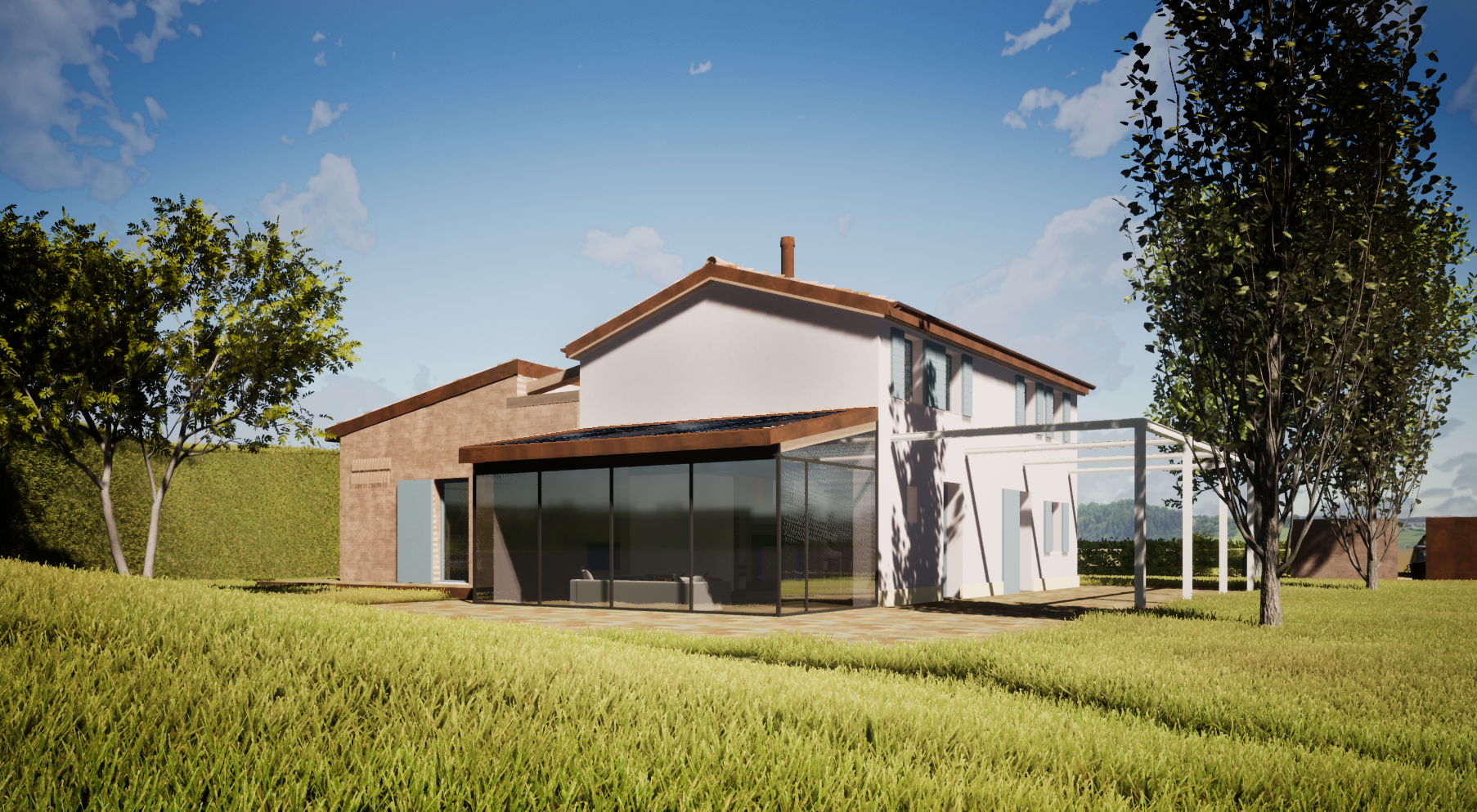 Rigenerazione di ex casa colonica sottoposta tutela e quindi conservata per quanto riguarda le strutture murarie perimetrali consolidate con telai interni in acciaio successivamente rivestiti con lastre in cartongesso e demolizione ricostruzione delle parti acceessorie